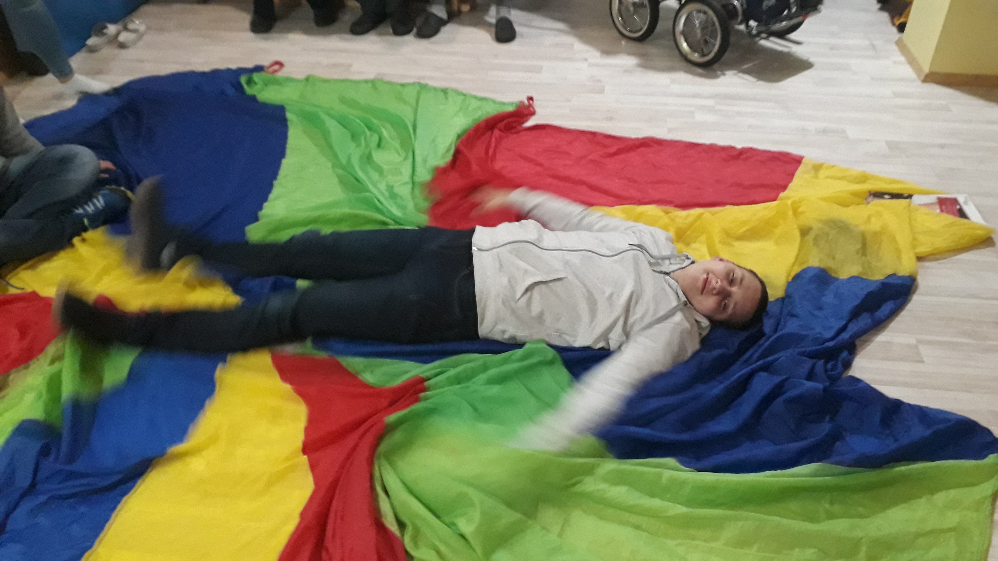 16.12.2021r. uczestniczyliśmy w zajęciach pt.” Zabawy zimowe”. Głównym celem naszego spotkania było usprawnienie motoryki małej, dużej oraz doskonalenie koordynacji wzrokowo -ruchowej. Nasza sala przez chwilę „zamieniła się „ w podwórko ze śniegiem. Chłopcy mieli za zadanie zrobić bałwana z piłek, udawać, że jeżdżą na łyżwach, zjeżdżają z górki oraz ciągają się na sankach. Najwięcej frajdy sprawiła jednak bitwa na „papierowe śnieżki” oraz zabawy: ,,Pingwinek”, „Jeż” oraz „Stary niedźwiedź” . Niezastąpiona okazała się również chusta animacyjna na której chłopcy „robili aniołki” i chowali się pod nią. Zajęcia przebiegały w bardzo serdecznej atmosferze, a unosząca się w tle, świąteczna muzyka dodawała nam energii do zabawy.